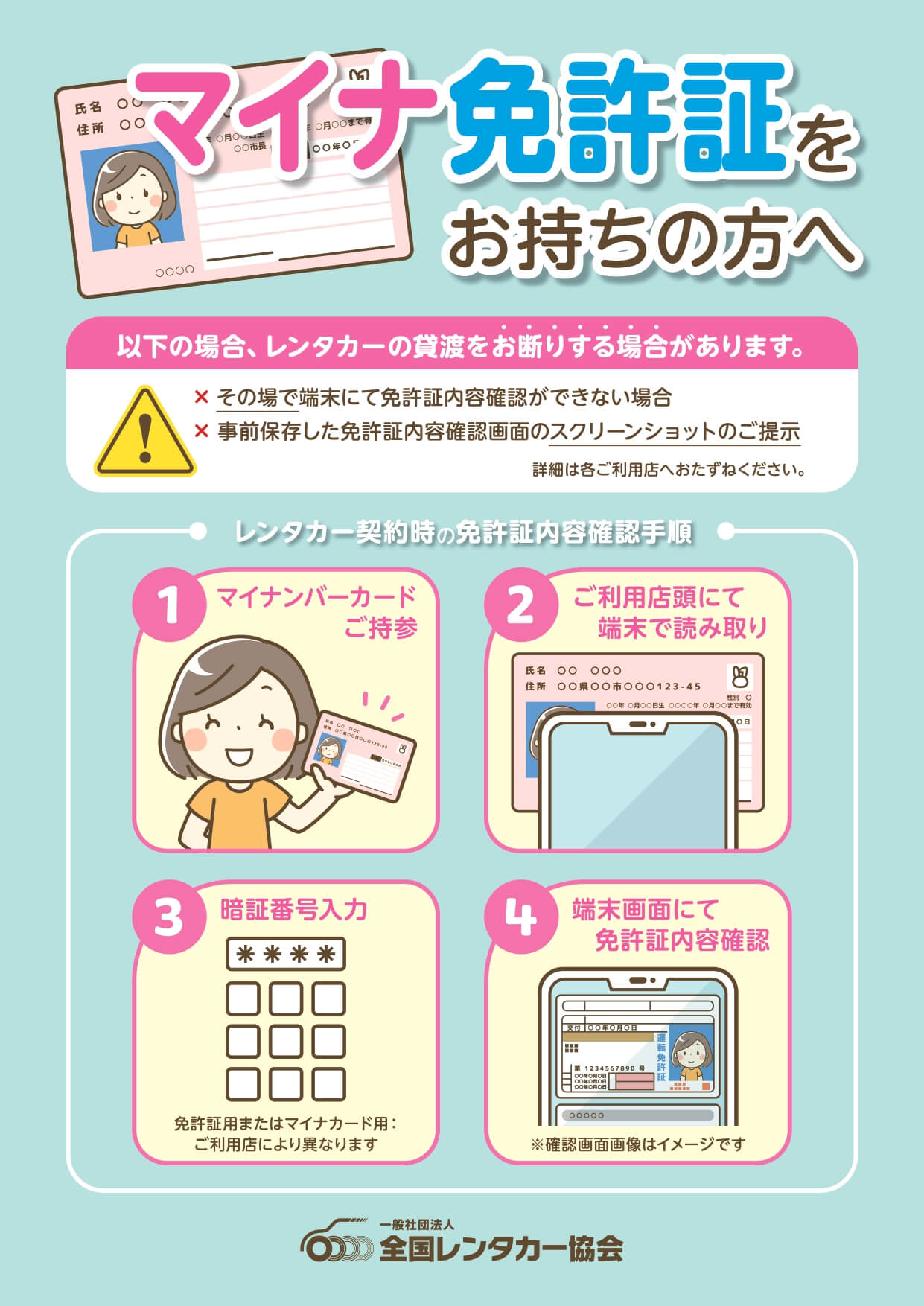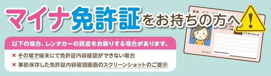 当店では、マイナ免許証をお持ちのお客様に、受付時にマイナ免許証読み取りアプリを使用し、免許証情報を提示していただくことでレンタル可能としています。